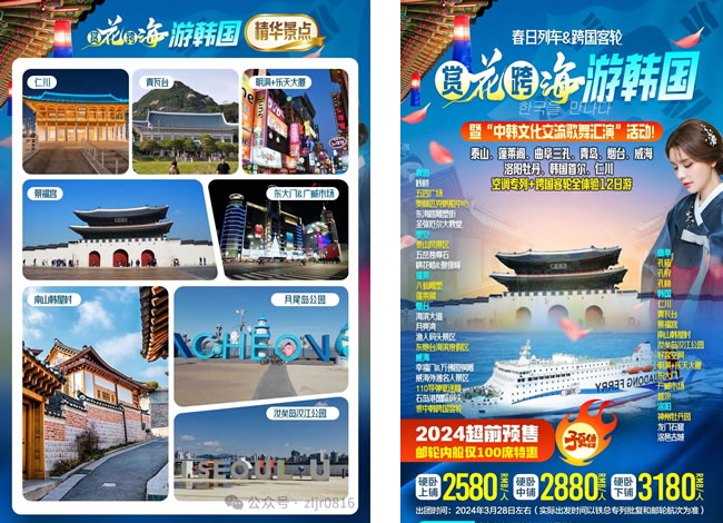 根据铁路总公司批复时间提前2小时统一抵达指定火车站集合,找到相应团号领队领取专列胸牌,乘专列前往青岛,开启中韩两国跨国之旅。