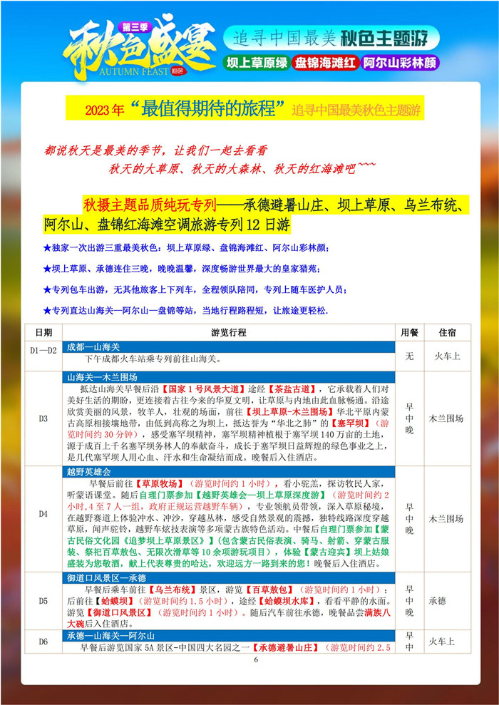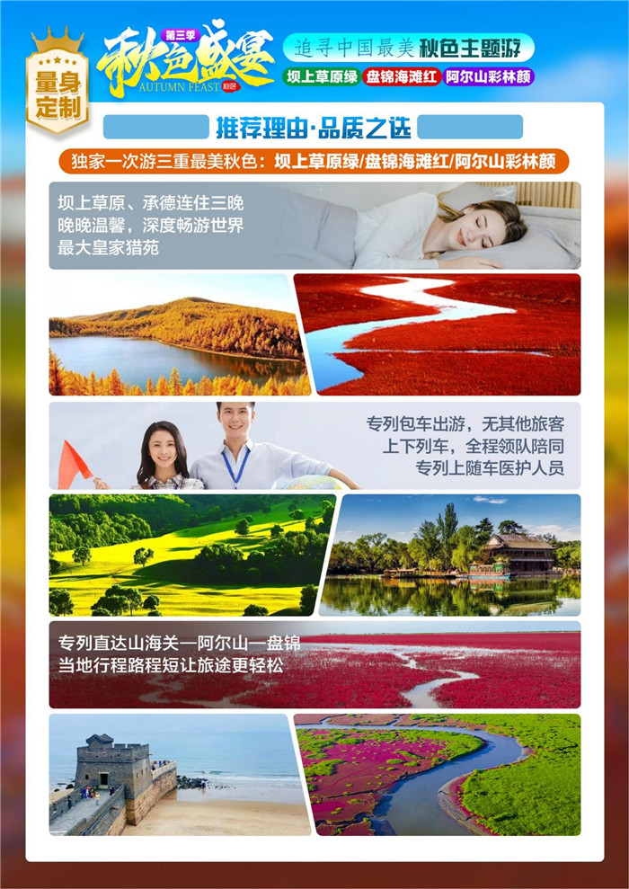 2023年8月16日,绵阳中旅行假日旅行举行2023年秋摄三绝坝上阿尔山红海滩空调旅游专列12日游推荐会,主持人热情洋溢的到场的嘉宾们介绍了追寻中国美秋色主题游“秋色盛宴”第三季纯玩空调专列12日游的线路详细内容。