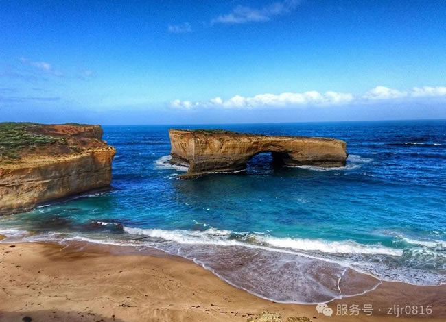 【伦敦断桥】从前这个岩石是突出海面与陆地连接的岬,由于海浪的侵蚀冲刷形成 2 个圆洞,正好成双拱形,所以 起名为“伦敦桥”。在 1990 年 1 月 15 日的傍晚时分,与陆地连接的圆洞突然塌落,与大陆脱离形成的断桥。大自 然的力量是巨大的,大自然塑造的景观有一种人工无法比拟的神奇。